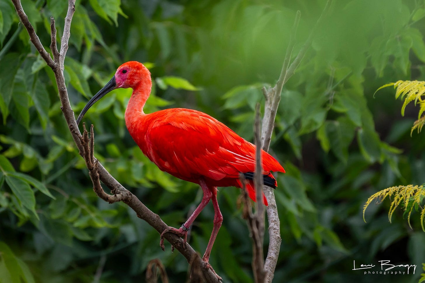 „Ibisul roșu surprins în fotografie provine dintr-o crescătorie de păsări ornamentale situată lângă Luduș. Această pasăre impresionantă se remarcă prin penajul său vibrant, de un roșu aprins, care contrastează puternic cu mediul înconjurător. Forma sa elegantă și ciocul curbat îi oferă un aer distinctiv, caracteristic speciei.”